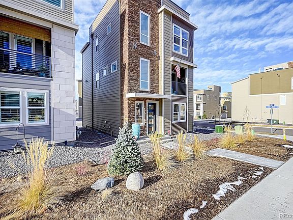 Upgraded 2 bed (plus office), 3 bath home in desirable Castle Rock on corner lot. Hardwood floors are throughout this amazing home. Enter on the main level to the lower level office with custom coffered ceiling. As you go upstairs, you will notice the upgraded staircase with 3/4 inch oak treads throughout all 3 levels. On the main level is the open kitchen/living room. The kitchen boasts full quartz counter with island with waterfall edges, Custom hood vent, tile backsplash, upgraded cabinets and soft close drawers, as well as a unique Brazilian wood live 10 ft. edge slab that is backlit (see pictures). The living room is cozy and has a custom entertainment center (TV and mount included) along with Candle place (fireplace not installed, but wired for an electric fireplace). Enjoy watching the most spectacular sunrises with your morning coffee on your main floor patio. The main floor also has a 1/2 bath. On the 3rd level is a nice size bedroom and full bath with custom tile, niches and deep soaker tub. Enter the master suite and immediately notice the custom beams. The master bath features a large walk-in shower and dual sinks. The master bedroom also includes a walk in closet. Go up to the rooftop deck where you can see the sunsets over the mountains (you will have an unobstructed view of the 4th of July fireworks the Town of Castle Rock puts on). There is also a custom built-in 10 ft. live edge bar top. Home also features 9' garage doors for those oversize trucks/SUV's. HOA dues include snow removal! Schedule a showing today of this upgraded home near all the shops and restaurants that Castle Rock has to offer.