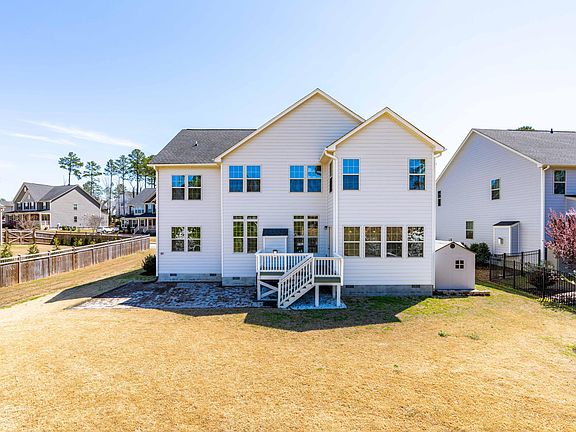 Welcome to your dream home at 3574 Johnson Grant Drive! This stunning residence is nestled in the serene community of Jordan Pointe in New Hill, offering a perfect blend of luxury and comfort. With 5 spacious bedrooms and 3.5 baths, this home is designed for modern living. As you enter, you're greeted by an inviting foyer that leads to an open-concept living area filled with natural light. The gourmet kitchen features stainless steel appliances, granite countertops, and ample cabinetry, making it a chef's paradise. The adjoining dining area is perfect for entertaining family and friends. The living room boasts a cozy fireplace and large windows that overlook the beautifully landscaped backyard, providing a peaceful retreat for outdoor gatherings. The expansive primary suite includes a walk-in closet and a spa-like ensuite bathroom, complete with dual vanities, a soaking tub, and a separate shower, Additional highlights include a dedicated home office, a versatile flex room that can be used as a playroom, media room, or guest space, a spacious laundry room, and a two-car garage. The private backyard is ideal for relaxing or hosting summer barbecues, with plenty of space for children and pets to play. Located in the desirable Jordan Pointe community, residents enjoy access to fantastic amenities such as walking trails, a community pool, and playgrounds. This family-friendly neighborhood is just minutes from local parks, shopping, and dining, making it the perfect blend of tranquility and convenience. Don't miss the opportunity to make this exceptional property yours! Schedule a showing today!