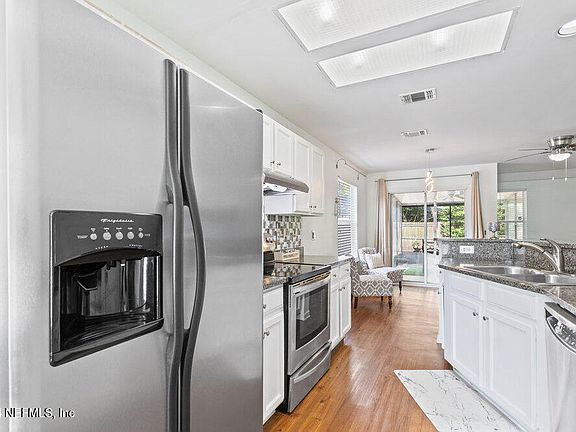 Escape to your own private retreat with a charming screened in outdoor patio, perfect for enjoying morning coffee or evening cocktails. Surrounded by lush landscaping, this serene space offers a peaceful escape from the hustle and bustle of everyday life. The versatile layout of this townhouse allows for flexible living spaces that can easily adapt to your lifestyle needs. Whether you're setting up a home office, crafting area, or cozy reading nook, there's ample space to personalize and make it your own. Conveniently located half bathroom downstairs for guests to enjoy. Upstairs, you'll find two spacious bedrooms, each offering ample closet space and plenty of natural light. The larger than average primary suite features a private screened in balcony, perfect for enjoying the beautiful Florida weather. This end-unit townhome features a 1-car attached garage for extra storage or parking! Embrace the outdoor lifestyle with the nearby natural wonders of Jacksonville. Explore the scenic trails and green spaces of the nearby parks, including the serene beauty of the Jacksonville Arboretum & Gardens or the breathtaking views along the Timucuan Ecological and Historic Preserve.