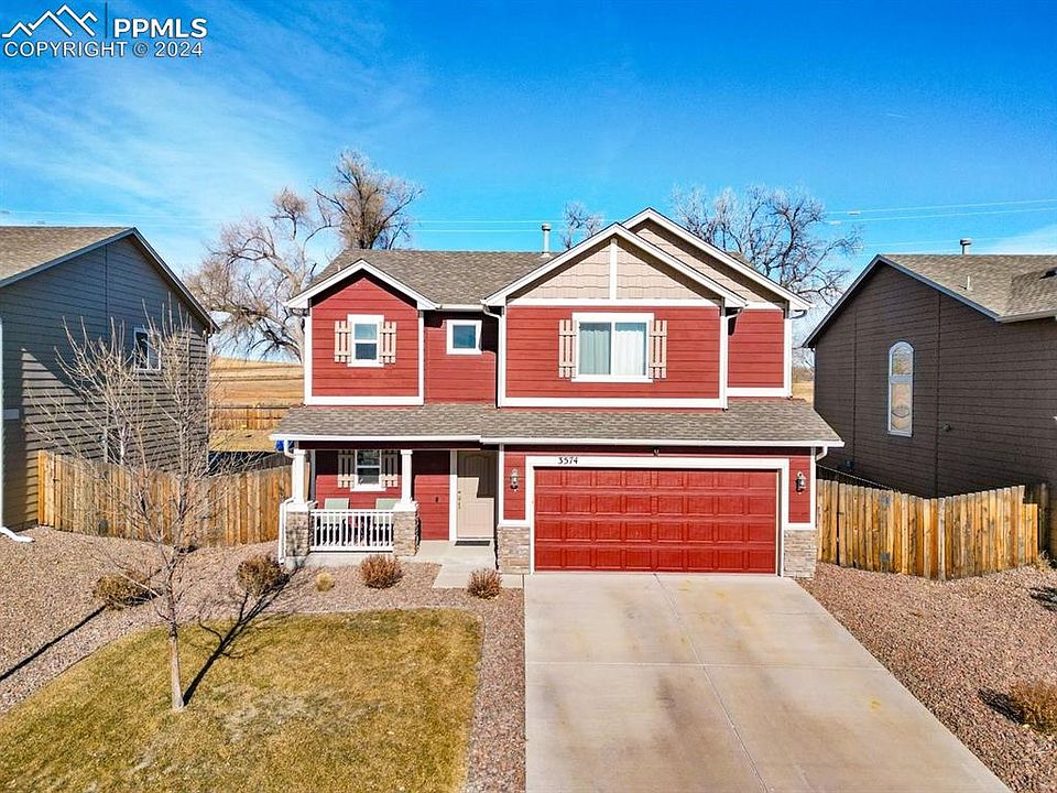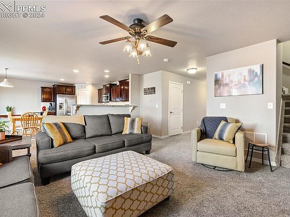 Experience the extraordinary appeal of this beautiful home situated in a serene countryside setting, offering the tranquility of rural living alongside the convenience of city amenities. Situated in the desirable Cuchares Ranch, this Challenger Home is immaculate and shows as if it were brand new. The great room boasts a fireplace and seamlessly connects to the large kitchen, complete with stainless steel appliances. Beautiful granite countertops provide ample space for food preparation. In addition, you will find a large pantry and eat-in dining area that features a charming bay window. Upstairs, the master bedroom includes a 5-piece master bath and a walk-in closet, accompanied by two additional bedrooms and a shared adjoining bathroom. A spacious laundry room completes the upper floor. The property also features a large yard and is conveniently located near Peterson and Schriever AFB and Fort Carson. Don't miss the opportunity to view this property in person.