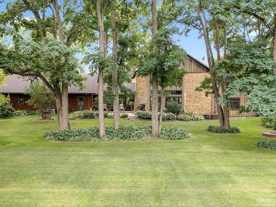 Welcome to this stunning home that was transformed from a livery stable back in the John Deere days. This unique home has been a labor of love for many years and continues to this day. The front entry is spectacular and made private with beautiful landscaping. You enter the home through a large 3-season porch with baseboard heat. Open the antique front door and immediately face an incredible living space. Everything was designed with a specific purpose, yet preserving the original character. Notches in the beams above show where horse stalls were originally placed on each side. The first floor has wide pine wood plank flooring throughout. Relax in the evening in front of the wood-burning fireplace in a cozy living room. Two beautiful stone walls were left exposed, creating a great ambiance to the entire space. Natural lighting comes in through the many picture windows and center skylight above a stunning custom-built wood staircase with shelves and lighting built-in, as well as a unique small office! There are special details throughout from a fox-head door knocker to the beautiful stained glass windows. The kitchen was updated in 2002. The upstairs full bathroom was updated with a walk-in shower in 2015. This property sits on 4 lots. Enjoy your evenings on the back patio looking at all the mature trees casting shadows across this spectacular yard. The oversized garage is the space of a 3-car garage. There is currently an attached 1-bedroom, 1-bath rental apartment with a separate entry and driveway. The possibilities are endless with this incredibly unique home!
