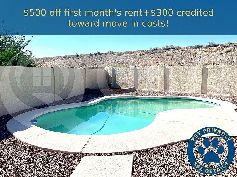 ** $500 off first month's rent+$300 credited toward move in costs! ** This charming well-maintained 3-bedroom, 2-bathroom single-story home offers 1,336 sq. ft. of comfortable living, with its standout feature being a private gated pool, perfect for relaxation and entertaining. The backyard includes a covered patio and plenty of space for pets to play. Pool maintenance is included, so you can enjoy it hassle-free. Inside, the kitchen is equipped with stainless steel appliances, ample cabinet storage, and a central island that opens to the living area. The home features easy-to-clean tile flooring, 5 ceiling fans, and natural shade from a large front yard tree, so you'll experience lower cooling costs during warmer months. Conveniently located near freeways, parks, walking trails, top-rated schools, and shopping and dining, this home is a fantastic rental opportunity. APPLICATION: $65 Application Fee Per Applicant 18 years or older (Nonrefundable). Please allow 24 to 72 business hours to process the Application once all required documents are submitted by all applicants 18 years or older. LEASE LENGTH: 12-month Minimum (Longer Lease Term may be negotiable) INITIAL MOVE-IN COSTS: Upon application approval, a nonrefundable Holding Retainer will be required to secure the property and will be applied towards the move-in costs. The Holding Retainer amount is determined by the type of Security Deposit option you choose. Applicants can choose between a traditional Security Deposit which may be 1.25 times the monthly rent but not greater than 1.5 times the monthly rent (75% refundable) or a Security Deposit Alternative program. A $250 one-time lease preparation fee as well as the first month's rent is due prior to move-in. Pet Policy: Dogs and Cats Allowed with the following exceptions: Pets will be considered upon approval! If the Applicant has a Pet, $150 Non-Refundable Pet Fee per pet. RECURRING MONTHLY COSTS: There is a 4.9% Rental Tax/Administration Fee. (AZ Dept of Revenue Transaction Privilege Tax ends December 31, 2024) If the Applicant has a Pet, a $35 Pet Rent Per Pet (Does Not Apply to Assistive Animals). All On Q Property Management Residents are enrolled in the Resident Benefits Package for $39 or $49 with pets, which includes liability insurance, credit building to help boost the resident's credit score with timely rent payments, move-in concierge service making utility connection and home service setup a breeze during your move-in, Renter to Buyer program, and much more! *Other terms and conditions may apply. All information including advertised rent and other charges are deemed reliable but not guaranteed and is subject to change.