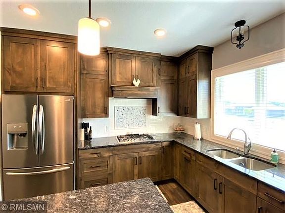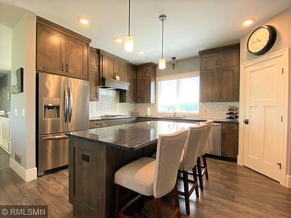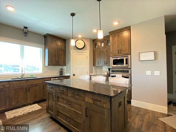 This exquisite open floor plan rambler with lookout windows in lower level sits on roughly a 1/2 acre lot with fenced in backyard that includes 16x12 MF deck along with a 21x14 stamped patio. Spacious foyer opens up to the large living room w/ open stairway to the lower level. Kitchen features an abundance of custom cabinets, granite counter tops, large center island with seating and walk in pantry all within easy access to nearby dining area that walks out to maintenance free deck & patio area. All 4 bedrooms are all very good size with a 16x14 owner's suite with walk in closet and private bath that includes in floor heat & walk in shower. There are 2 large bedrooms in the lower level, family room, full bath, exercise room abundance of storage, entire lower level has in-floor heat along with forced air. Nicely landscaped yard with under ground sprinkler system. South side location has easy access for commutes to Twin Cities or up north. Association with pool.