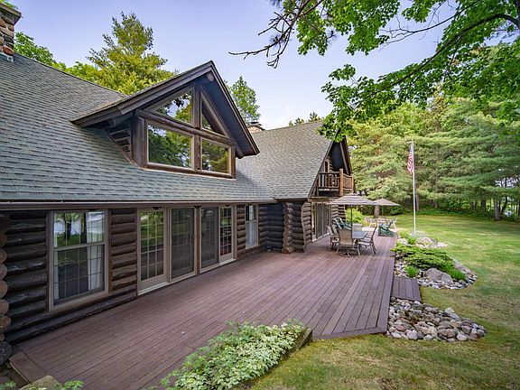Experience authentic “Up North” with this stately log home set among majestic pines & a pond on a large 1.16 acre lot with 185 ft. of shoreline on Clamshell Lake of the Whitefish Chain. This 4BR/5BA fully furnished home features exceptional interior appointments such as a large family room with vaulted beamed ceiling & stone FP, gourmet kitchen with stainless steel appliances, hardwood flooring, tiled foyer, & a main level master bedroom suite with fireplace & private bath with separate tub & shower. The upper level features a large bunkroom with 4 beds, fireplace & private ¾ bath, along with an additional 2 BRs & a bathroom. Enjoy the fabulous landscaping and a beautiful lakeside deck & fire pit complete with spectacular lake views. Detached 2 stall garage with an unfinished upper level offers additional storage. Excellent location just minutes from great restaurants, fantastic golf courses and the various shops of Crosslake, Pequot Lakes and Breezy Point!