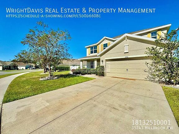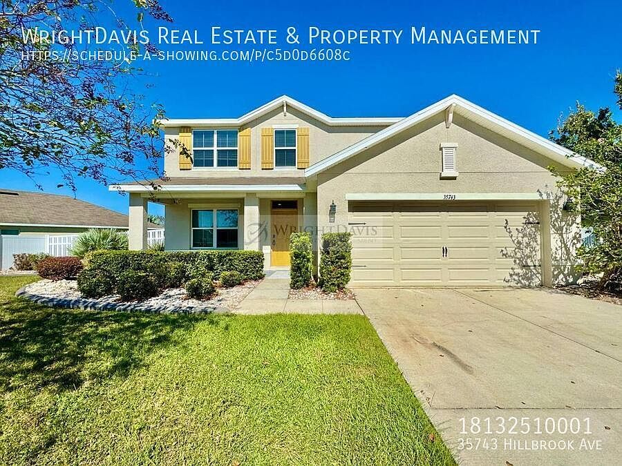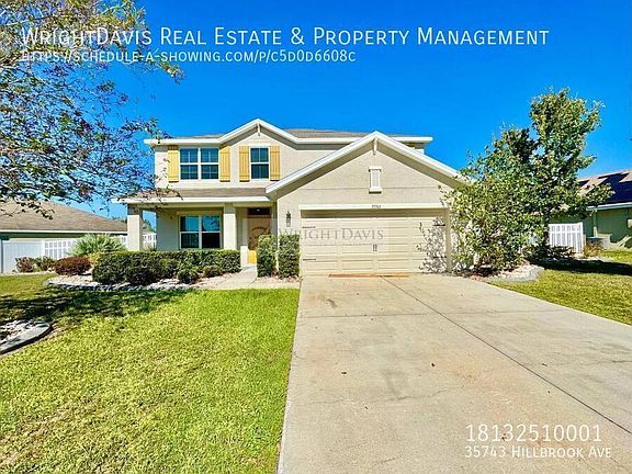 Welcome to this beautifully maintained 5-bedroom, 2.5-bathroom home located in the desirable Zephyr Ridge community of Zephyrhills! This spacious two-story home features an open and airy floorplan with soaring ceilings, ceiling fans, and fresh new paint throughout. Enjoy cooking and entertaining in the dream kitchen, equipped with an all-black appliance package, abundant cabinetry and pantry for all your storage needs. The main living areas boast rich wood laminate flooring, while the upstairs features brand new carpet for added comfort. Upstairs, you'll find generously sized bedrooms, including a primary suite with large walk-in closet and a private en-suite bath featuring a dual sink, long vanity and walk in shower. Step outside to your fully fenced-in backyard oasis with a charming paver patio perfect for relaxing or entertaining. Plus, enjoy the added privacy of no rear neighbors! Additional features include a two-car garage, included washer and dryer included in the oversized laundry room with tons of cabinetry, and lawn care provided, giving you more time to enjoy the peaceful surroundings of this sought-after community. Amazing community amenities such as a community pool as well. Don't miss out on this move-in-ready gem in Zephyrhills schedule your tour today! In addition to the advertised base rent, all residents are enrolled in the Resident Benefits Package (RBP) for $50.00/month which includes HVAC air filter delivery, credit building to help boost your credit score with timely rent payments, utility concierge service making utility connection a breeze during your move-in, and much more! More details upon application. Pets welcome, max 50 lbs, 2. Vacant and Available now