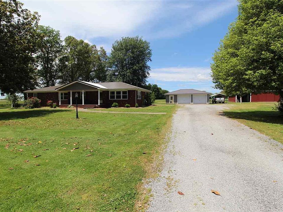 Two acres & lots of remodeling/updating has been done in this 3 bdrm, 2 bath home. PLUS it comes with a 2 car detached garage w/office or storage rm plus a fully insulated shop! Walls were removed to create an open floor plan & exterior brick was removed & re-bricked. Kitchen completely gutted (2012) & features custom Amish cabinetry, countertops galore, 2 full pantries plus breakfast or sunroom addition. Beautiful brick flooring completed the kitchen remodel. Lovely hardwood flooring throughout even in the rustic family rm. Hall bath also gutted...step in here to an amazing soaking tub & more Amish cabinetry. Both the garage & home have brand new metal roofs (April & May, 2020). Septic lines replaced & property resurveyed & so much more!