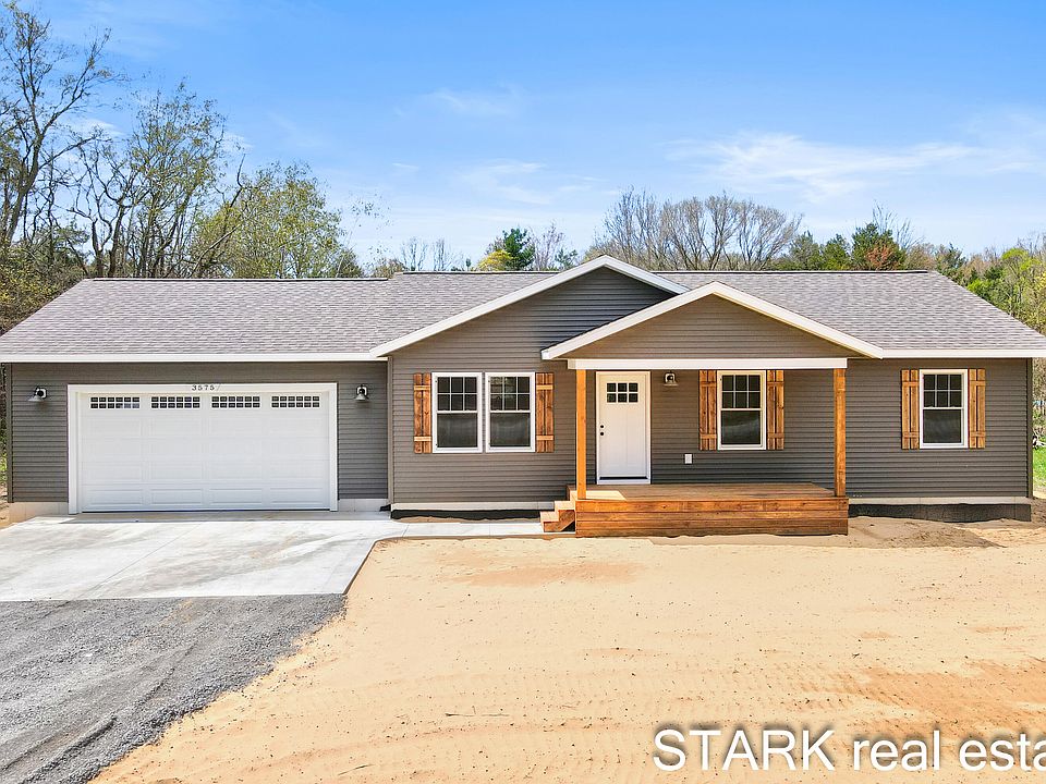 BRAND NEW!!! Fruitport Schools new construction on a one acre lot with a paved road, natural gas, and internet available. This modern ranch is very well built with an open floor plan, main suite, 3 bedrooms, 2 bathrooms and a slider off the back to a private back deck. Also has an attached 2 car garage, wooded setting, and just east of town to enjoy the peace and quiet while still just minutes from highways and main stores. Buying new is cheaper than building and take advantage of immediate possession!
