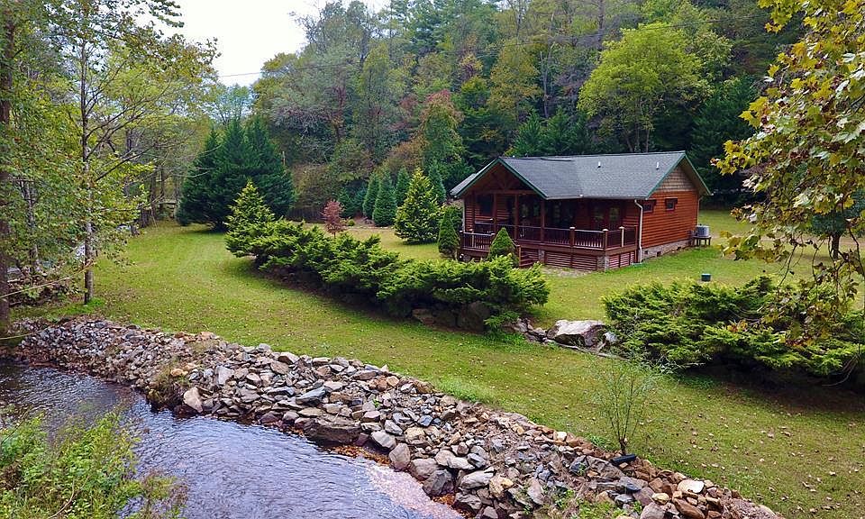 990+ Feet of BOLD Ellijay creek frontage with this custom built functional 2 Bedroom 2 Bath Log Home (3 Bedroom septic installed) with detached 2 Car-Garage/workshop. This lovely log cabin sits on just over 3 level acres, was built in 2005 and has been used as a vacation home since that time. Relax and enjoy listening to the amazing creek from your spacious covered deck or enjoy a closer look at the creek-side firepit. GREAT level yard! Inside this home you'll find features such as: Granite counter-tops, Gas Cooktop Oven, Stainless Steel appliances, Ceramic tile and Hardwood floors throughout. The living room and foyer have lovely wood vaulted ceilings. Living room also features stone gas log fireplace plus a wall of windows to lead you out to the deck and creek. Main level living and spacious master bedroom has walk-in closet and private en-suite bath with step in shower. Truly amazing setting with access off of a state maintained paved road but you feel like you're arrived at your own private oasis once on the property. Don't miss a chance to see this lovely home! Furnishings can convey with right offer, except for: Red Recliner, Red Wood table & all animal mounts/antlers.