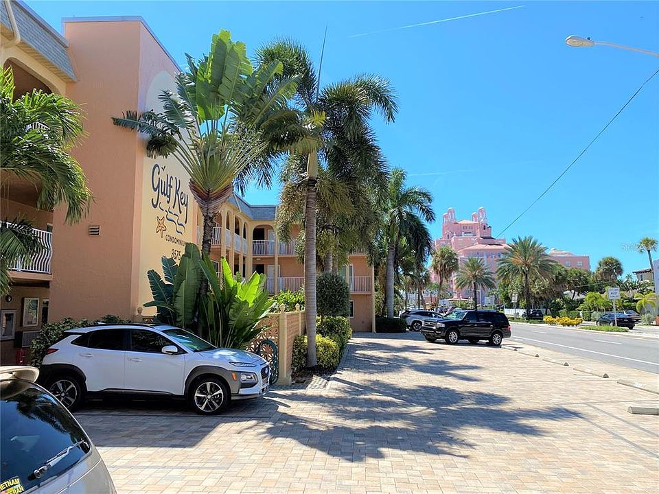 Stunning Location in the shadow of the Iconic Beach Hotel in Don Cesar Place with Beach access just across the road. Updated Kitchen and Bathroom and HWT and AC unit. Not only do you get to enjoy walking across to the road to the Beach and, walk to restaurants nearby. St Pete Beach was once called Long Key, its sands, stretch from 1st ave to 72nd ave. St Pete Beach or SPB. The city has Free convenient Beach Electric GOlf carts. The North beach is called Upham and the south in Pass-A-Grille, residents can pay $20 per year and avoid parking pay $3.50 Parking Per hour!! No Carpet here, stunning new Kitchen and new Bathroom, new lighting, new windows, new AC and, new Instant HWT. Lightly furnished with you in mind. Storage locker is handy for your beach gear. Sorry, No Pets. Move to St Pete Beach and make this adorable corner unit today. No Pets