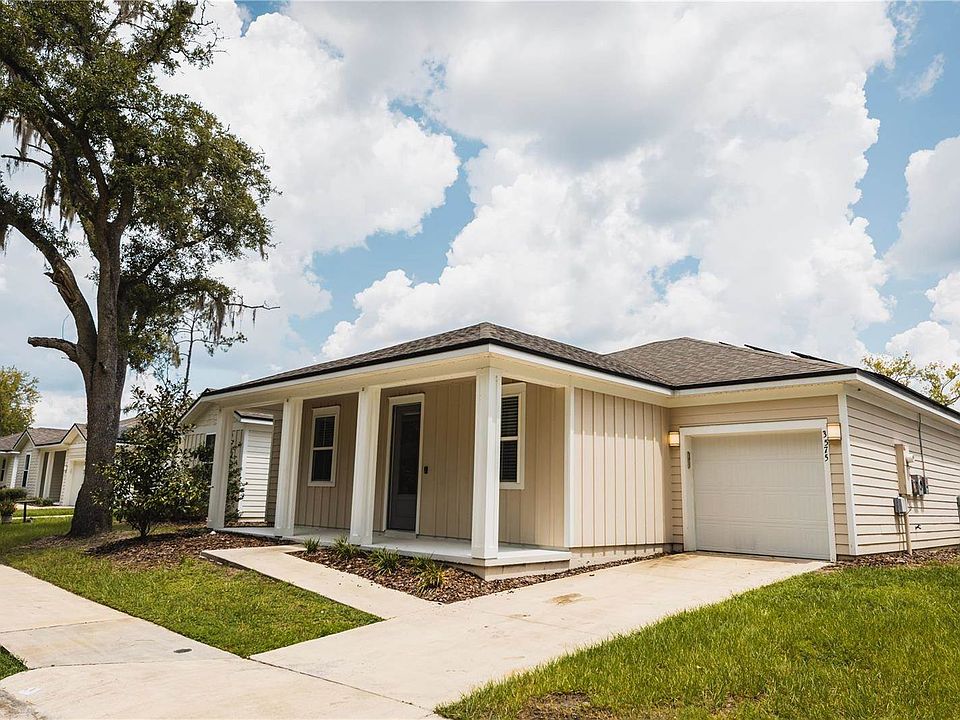 One or more photo(s) has been virtually staged. This 3-bedroom, 2-bath home with a bonus room/den offers a bright and comfortable layout designed for everyday living. Positioned on the perimeter of the community with no front neighbor, it provides added privacy and open views. The kitchen is equipped with solid surface countertops and stainless steel Samsung appliances, while an oversized indoor laundry room adds convenience. Many rooms feature raised cable and power outlets for wall-mounted TVs, along with recessed lighting throughout. Enjoy outdoor living on the covered back porch, accessible from both the living room and the owner’s suite overlooking the open backyard. A welcoming covered front porch completes the charm. Additional features include an OnQ Wi-Fi garage door opener, ADT digital alarm and smart home control panel, EcoNet-enabled digital hot water heater, and pre-installed solar panels to help reduce utility costs. With the use of our preferred lender, Seller is offering $6,000 toward closing costs or rate buydown, and lender is offering up to an additional 1% towards closing costs or rate buydown. Contact us today for details!