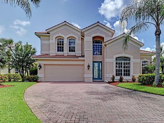 Discover this stunning beautifully landscaped, grand Estate 2 story home the moment you drive up the long paver driveway. Scenic water views are enjoyed from almost every room & the outdoor extended paver Lanai w/ new picture screen. Well-appointed designed soaring ceilings from the Entryway through the Great room are impressive. Kitchen offers new stainless appliances, granite counters & stone tile back splash. Volume ceilings & solid wood floors are featured in Master Bedroom with large walk-in and Bath and in Office/Den w/French doors, & plantation shutters. Perfect for Guests and/or your Hobbies the upstairs is complete w/2 spacious bedrooms, bath and loft area with double tray ceiling. Plus new A/C , Central Vac, Electric Blinds and much, much more ! The gated golf course community of Riverwood offers something for everybody! Community pool, clubhouse, fitness center, tennis courts, 4 1/2 star golf course and a dog park. Memberships are optional for Golf and Beach club on the Gulf of Mexico. Gulf beaches are 15 minutes away.