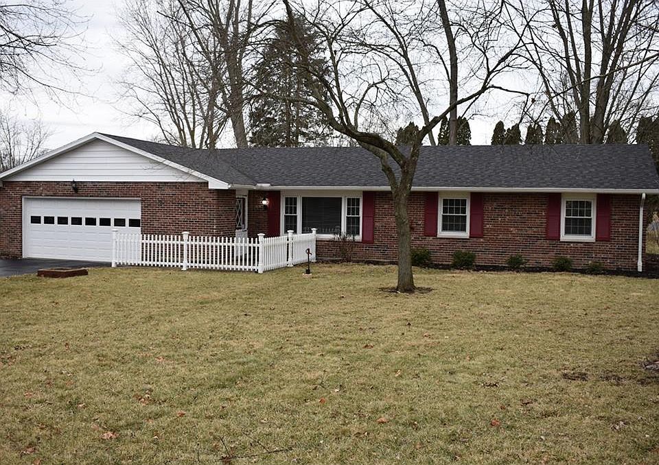 Delightfully deceiving brick ranch gracefully situated on +3/4 acre lot shaded by mature trees in wonderful edge-of-town location yet convenient to all the amenities.Welcoming tiled entry opens to expansive family rm highlighted by large picture window,opens to dining area w/ breakfast bar seating overlooking cook's delight remodeled kitchen showcasing tiled floors,new counters,slate-tiled backsplash,stainless appliances & lights accenting the crown-capped elegant cabinetry.Updated tiled flrs extend into convenient utility offering extra storage & shelved pantry,continuing to owner's ste updated bath w/ walk-in shower,new vanity & fixtures.Two additional gracious-sized bedrooms w/ double closets perfectly appointed to 2nd bath. Sunken family rm w/ walk-out to covered patio to enjoy the serene setting.2-car attached garage plus oversized storage shed('10).New awning & rear gutter '16,roof & front gutters (tear off)'14,main power line overhead to meter '15,added underground storm pipes