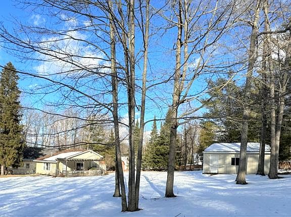 MOVE IN READY! Year round home, or up north cottage, has maintenance free vinyl siding. Ready for you and your family, with immediate occupancy. 2 bedrooms, 1 full bath and 728 square feet of open living space. You will appreciate the 24 by 24 pole barn, with electric & concrete floor, for all the lake toys. Just the right amount of privacy; nestled on 3 lots, total property is just over one half acre. The sliding glass door welcomes an abundance of natural light, and is convenient access to the 20 by 12 patio with pergola. The main entrance, and mudroom, have drywall walls and tile floor. Upon entering the home, you are welcomed by the rustic, and well cared for, knotty pine walls and vaulted ceiling, giving this up north gem so much character. The cute little kitchen has a nice amount of cupboards, a dishwasher, new refrigerator, and new gas stove. Just off the kitchen is the laundry and utility room , where you will find a new washer, dryer, new furnace, new hot water heater and easy access to the crawl space. New roof 2020, New well 2018. Take a look at what you and your family could be enjoying by Memorial Day! Why not enjoy it all year long? Water skiing, boating, swimming, kayaking, fall Colors, snowmobiling, ice fishing, bon fires and so much more! 8,800 acres, crystal clear, hard sand bottom, and very deep, all sports Hubbard Lake!!! It's what life is all about. The private lake access is extremely close, it is less than a 5 minute walk or golf cart ride. If you're looking for an affordable "Up North" lake home or family cottage you can enjoy and not constantly have a list of "things to do", look no further. This is the place for you! Located on a dead end paved road. Thank you for taking the time to view this virtual tour. If this is something you can imagine you and your family enjoying all year long, please, don't hesitate to make that call, bring the whole family, and see it in person.