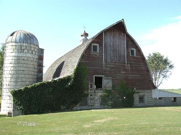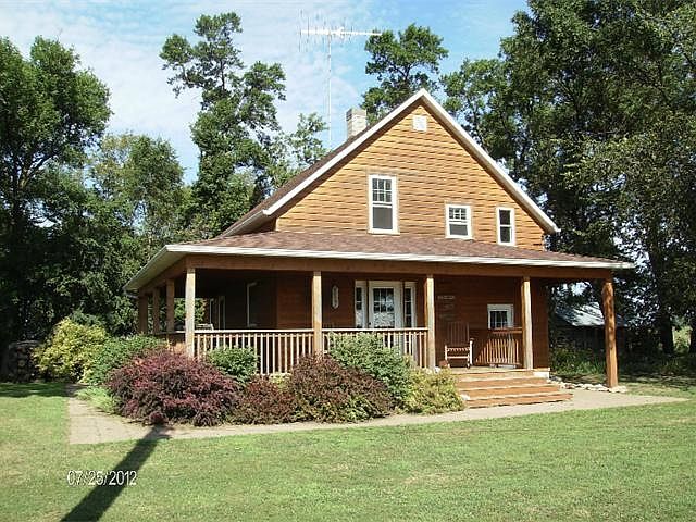 Enjoy this peaceful country setting! 3 bedroom home with wrap-a-round porch on 3.37 acres with fenced pasture. Outbuildings include: tripe garage, machine shed, barn, quonset, grainery, log cabin and 2 grain bins. Call to see!