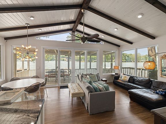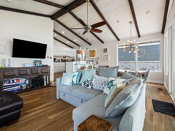 Grand Point waterfront on Grand Lake! This two bedroom, two bath cabin was remodeled with love! You can feel it the minute you walk in the door. The sellers gutted the inside and turned it into a very cheerful place overlooking Grand Lake. New windows and large sliding doors open onto a covered deck. New vinyl plank floors throughout. The bathrooms offer beautiful tiled walls. Kitchen has granite and new appliances. Must see to appreciate!