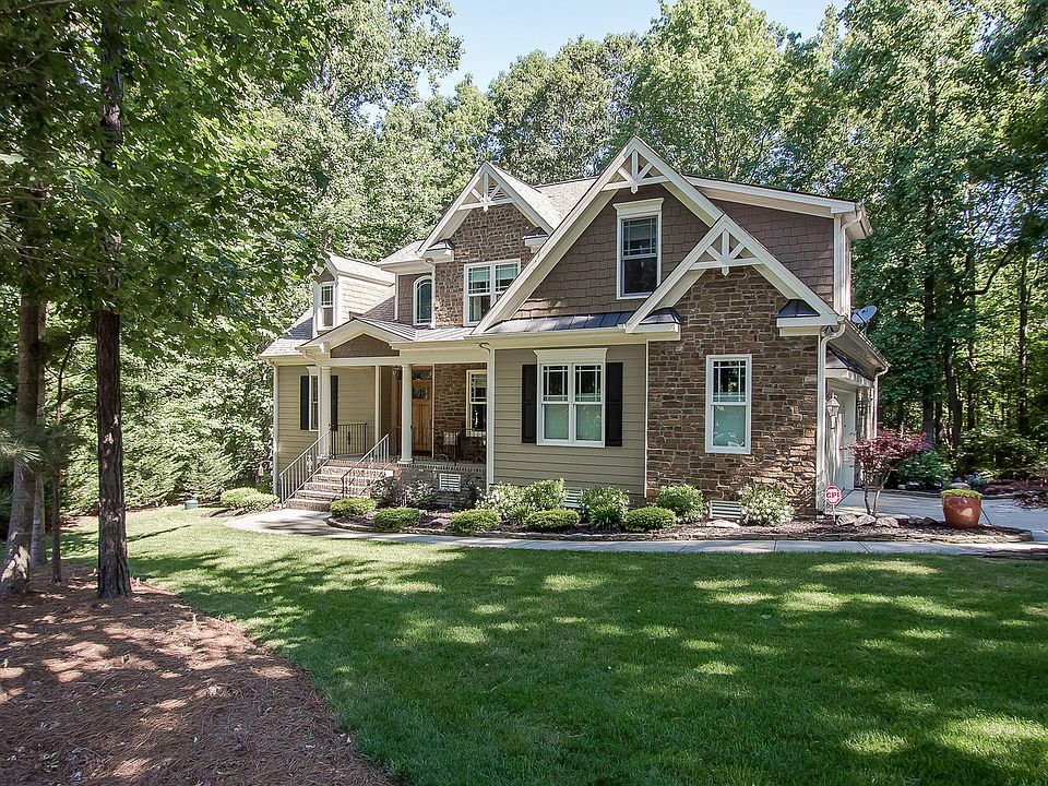 Stunning home on serene .92ac wooded culdesac lot! Gleaming hardwoods, heavy crown molding, wainscoting, coffered ceiling in formal DR, 2-story family rm w/ skylights, & luxurious finishes thru-out! Gourmet kitchen w/ granite, SS, walk-in pantry & endless cabinet/counter space! 1st fl master suite has tray ceiling, WIC & fully filed bath w/ dual vanity, whirlpool & sep shower. Bonus room + flex/fitness off 2nd BR. Screened porch & expansive deck overlook wooded yard. N'hood clubhouse, pool & playground!