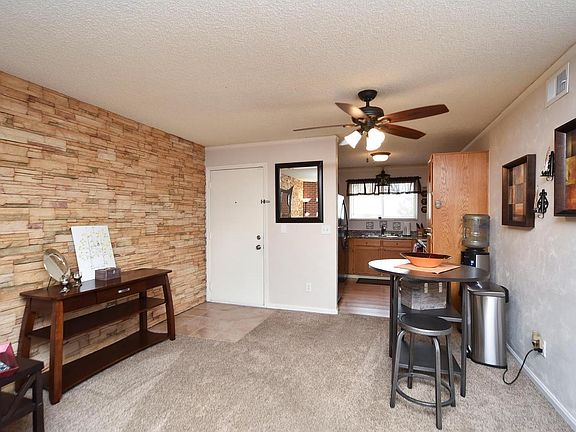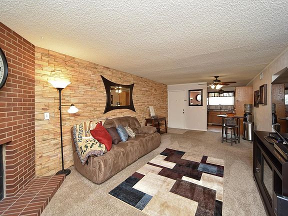 End unit. Beautiful 2 bedroom, 2 full bathrooms, open and bright floor plan, Rare Deeded parking spot (407) right out the back door. No stairs from the back side. Very easy access in to unit. Living room with awesome brick wall and fireplace. Updated kitchen, all appliances, large master bedroom with ceiling fan dbl closets and master bathroom. Great updated hall bath, Nice patio with extra storage and rose bushes facing open area. Bricks on patio and fireplace are from the Rockies stadium. ( We were told). All vents and furnace cleaned Nov 2016, New Ceiling fan w/remote, Xfinity alarm system, New Kenmore washer 2016. Carpets just cleaned May 2017