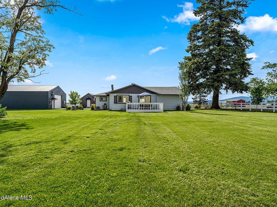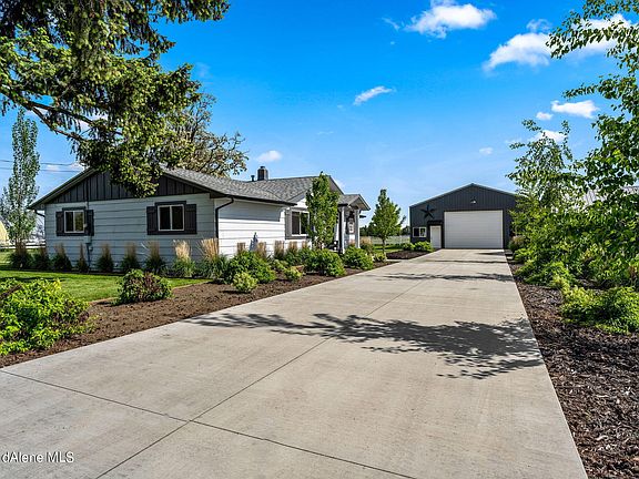 Owner Carry!!! If you are looking for an amazing piece of land in Hayden, you'll love this charming single level home that is tastefully remodeled. What a great investment opportunity!!! With nearly 5 acres in a convenient and private location, you'll have plenty of space. The huge shop and multiple outbuildings will hold all of your toys or equipment. Close to schools, parks, with stunning mountain views. This full remodel in 2021 includes: flooring, paint, light fixtures, full kitchen and bathrooms, windows, shop (with bar added), and deck. Was a successful VRBO Rental. If you were to have the most accessible location for Hayden, Cd'A, Rathdrum, and Post Falls... this would be the perfect spot for all areas. There are so many possibilities for this land; whether it be farming, raising animals, space for heavy machinery, or just plenty of breathing room on fully useable acreage. Home is located at the end of a public maintained road right off Atlas. No CC&R's or HOA.