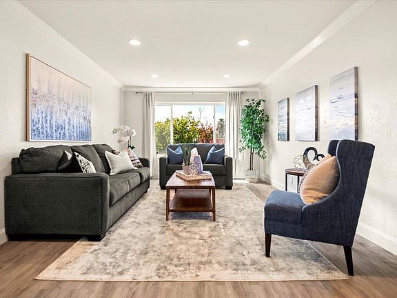 Absolutely charming home nestled in a wonderful neighborhood and close distance to a large neighborhood park. Home has been newly updated for its new homeowners with beautiful vinyl laminate flooring, baseboards, crown molding, updated electrical and outlets, new interior texture and paint and recessed lighting throughout. Separate living room and family which fireplace has been refaced with contemporary style tiles. Newly updated bathrooms, with beautiful tile floors, vanities, nickel finished fixtures, stylish shower tiles and lighting fixtures. Primary bedroom has good size closet with new barn door. Updates performed with city permits. Solar panels owned. Great commute location. A must see.