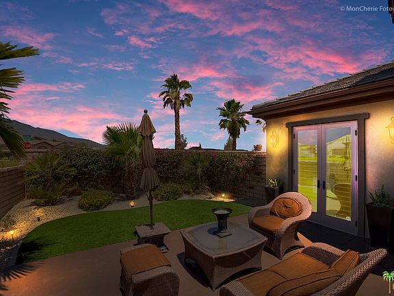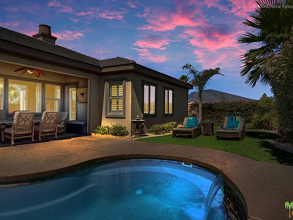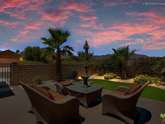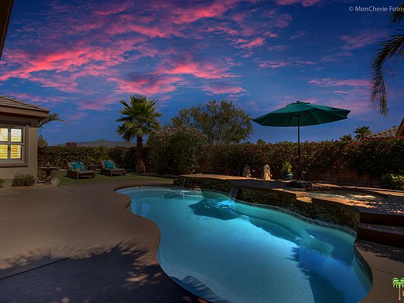 Look no further! Superior Pollock model home built by Ponderosa. Beautiful courtyard with spectacular views of the San Jacinto Mountains boasting stamped stained concrete and desert landscaping. Great Room featuring cove ceiling, fireplace, gourmet kitchen with granite, built-in stainless steel appliances (including refrigerator, double ovens, microwave and cooktop). Dining/Billiards Room. Master Suite with large walk-in-closet, soaking tub, and his and her vanities. Entertain in style or just relax in the private backyard featuring, fiberglass pool/spa, water feature and fiber-optic lighting, artificial lawn and stained concrete decking.  Covered patio, served by double doors from the dining/kitchen area. Bring out your inner chef with the complete outdoor kitchen featuring stainless BBQ, cooktop, cabinets, sink and refrigerator. Close to Westfield Shopping Center, Palm Desert Aquatic Center, The McCallum Theater and World Renowned El Paseo.