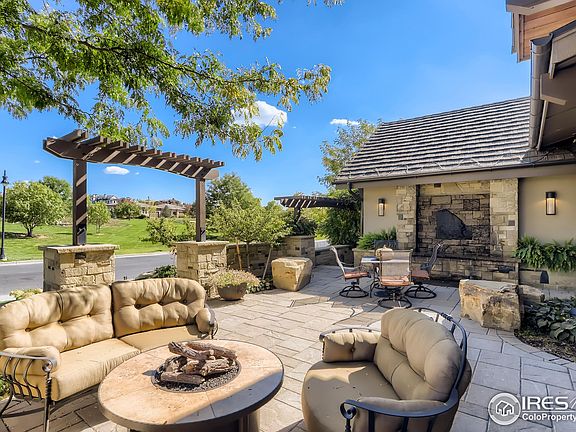 Welcome to this truly magnificent custom home built by Tree Line Builders and Tomlinson Design. This impressive 5 bed/6 bath ranch plan home with walkout lower level backs to the natural area separating the home from the 15th green and 16th tee box of The Harmony Club and is perfectly positioned to showcase the Rocky Mountain views. Peaceful, quiet setting backing to natural area and golf course. The remarkable roof line offers beautiful interior design. Meticulous detail and exquisite craftsmanship truly make this home a work of art. The floor plan was intricately designed to accommodate family living and entertaining spaces while providing secluded bedrooms and a warm feel throughout. Enjoy the expansive deck, while bringing the outdoors in with the seamless flow of the NanaWall. A private main floor primary bedroom awaits with its own fireplace, patio and views, steam shower, laundry room and expansive closet. Living room boasts a custom designed open air fireplace that will draw you in on those chilly Colorado days. Venture down to the lower level that displays an extension of the quality features of the main level showcasing a bar, spacious great room, fireplace, custom wine room, 3 additional bedrooms and plenty of accessible storage space. The blend of custom materials featured in this home along with an endless list of features including radiant heat throughout, reclaimed Tobacco wood floors, vaulted ceilings, custom wood beams and metal work, Smart Home, 3 separate decks, 13 foot kitchen island, 3 fireplaces, 2 laundry rooms and incredible wine room make this home a must see!