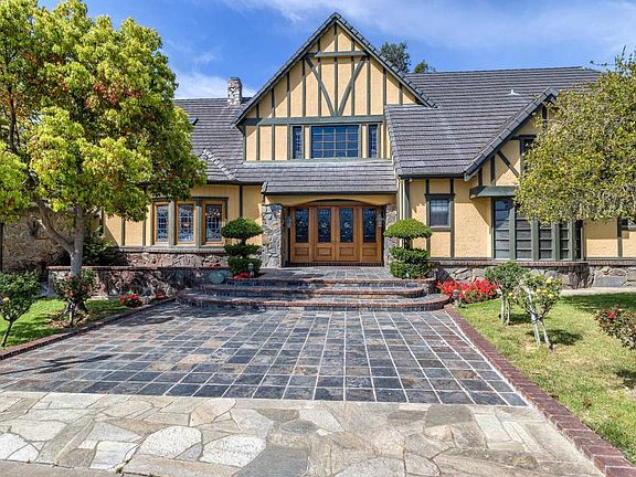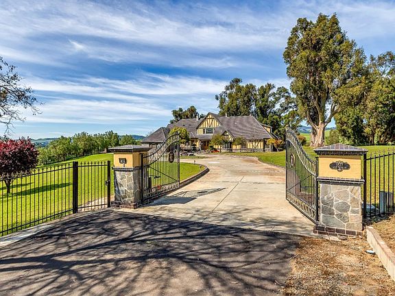 This Country English Tudor Estate has 7,600 sq.ft living space, sits on a private gated 3.51 acres with a stunning hill view and offers 5 Suites, over sized 3 car attached garage. Master suite downstairs, elegant library and grand marble foyer with old world atmosphere, Beautiful solid mahogany and redwood throughout the house, updated and remodeled kitchen, wine cellar, home theater, fitness, three fireplaces, dual well system, quad air zones controls and Swimming pool. 3.51 acres with endless possibilities. Great Sunol school.