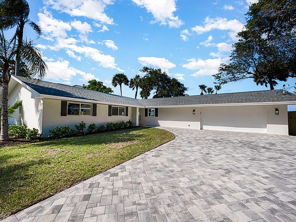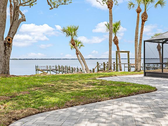 Effective age of this entire home is 2024! Everything is brand new except the concrete block walls & trusses. 1/2 acre direct Indian riverfront screened pool home, at the end of a quiet oak tree lined dead end street w/no traffic. Lots of character in this peaceful neighborhood. Perfect setting & location. No HOA, no flood zone & deep water. ALL are brand new: roof, soffit, fascia, AC, ductwork, insulation, hurricane windows & doors, all complete plumbing & electrical, tankless water heater, septic tank/drainfield(plus city sewer is coming soon), engineered hardwood floors, island kitchen w/quality appliances, pot filler, quartz counters, full pantry & wine bar w/fridge, upgraded bathrooms w/nice tile work & quartz counters(master has large walk-in closet & seat in shower), resurfaced screened pool, brick paver on driveway, walkways, patio & pool, fans, lights, switches, doors, trim, baseboards, too much to list. Privacy fenced yard, indoor laundry room, city water. On & on...