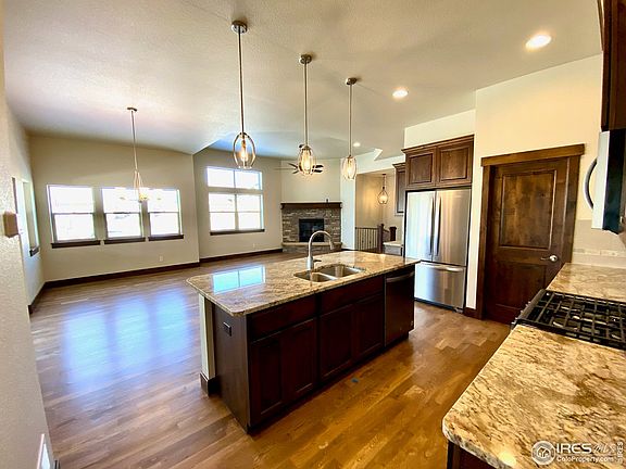 The perfect "down-sized" ranch plan! Upscale finishes incl. slab granite, tile backsplash, wood floors throughout great room, kitchen, dining & hallway. Open floor plan w/beautiful corner gas fireplace in the great room. Lg. M Bdrm w/ensuite bath & granite counter tops, poured pan tile shower with bench. Walk-in closet has oodles of storage. Enjoy the wonderful Colorado weather on lg. covered patio (13' x 19'). 25' Deep garage. Homes are attached w/only one shared wall in the garage.