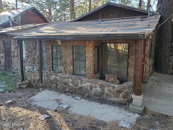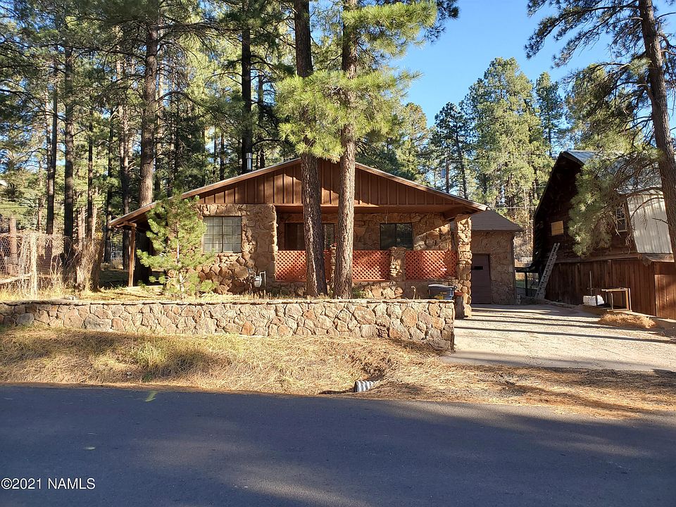 This is the starter home or weekend getaway cabin you've been looking for! Cozy malapai rock cabin with numerous old growth Ponderosa Pine trees on this quarter acre lot. Single car garage, covered front deck, side patio, gas stove in living room. Seller replaced water line in past year. Septic cleaned out July 2021. Gas stove in LR is nearly new. Prior easement parallel to back fence was released. Title to confirm. Home is being sold AS-IS.