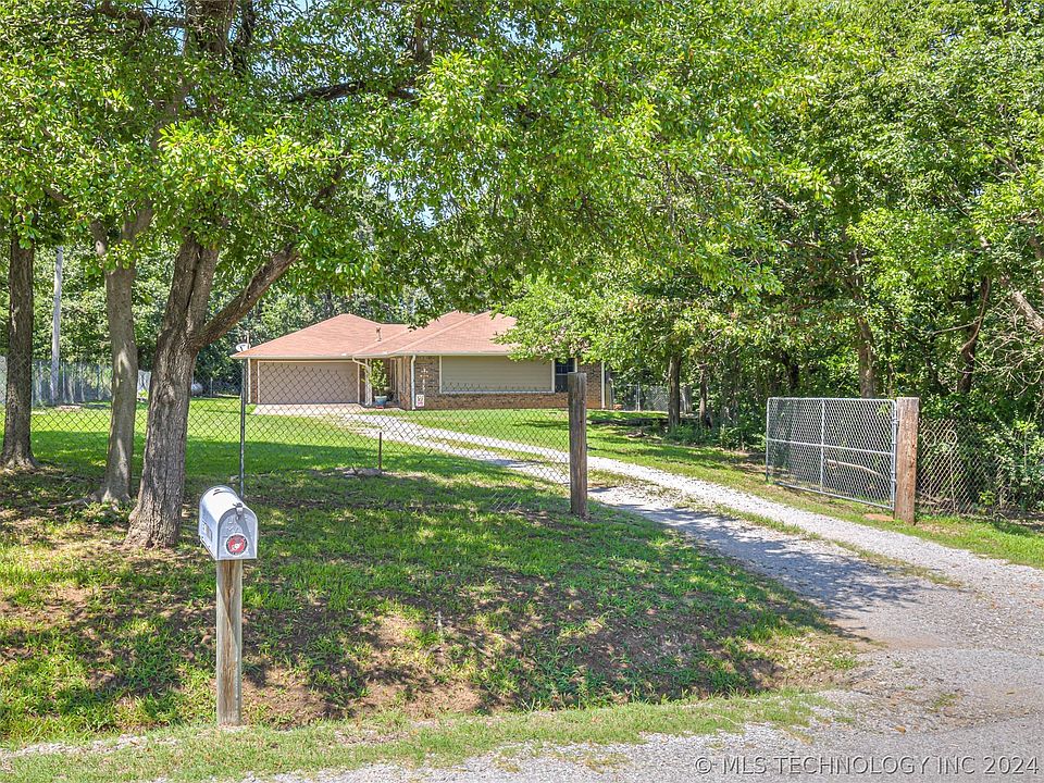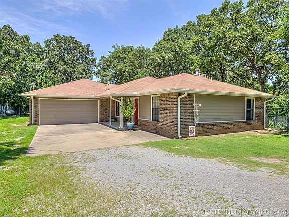 Discover your dream home with this charming 3-bedroom, 2-bathroom gem nestled on a sprawling 2.5-acre lot, offering the perfect blend of solitude and convenience. This well-kept 1,661 square foot property features some serene wooded areas, lush grassy expanses with both shade and sun, and private creek access, all framed by beautiful mature trees. Newly painted siding and new gutters. Inside, enjoy the benefits of a new chimney, a new hot water heater, a new refrigerator, and dishwasher. All appliances stay, making your move-in seamless. The two-car garage includes an air-conditioned hobby room with water hookups and a sink, ideal for your projects or creative pursuits. Well access is available for hook up if buyer wants to switch from city water. Experience the peace and quiet of country living just 15 minutes from downtown Tulsa. Don’t miss this unique opportunity to own a slice of country paradise with modern conveniences. Schedule your tour today!