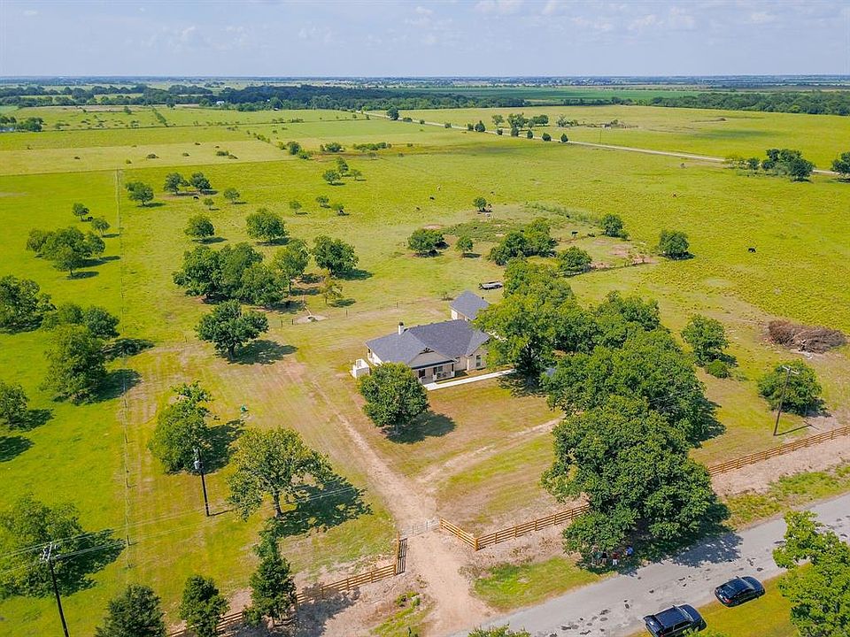 Gorgeous custom built home (2017) nestled on 11 unrestricted acres in Waller County. Country grandeur and endless possibilities make this property easy to fall in love with. Sit on the back covered patio and enjoy the breeze with your favorite beverage. Home features open concept floor plan with 3 bedrooms, 2 full baths & 1 half bath, game room, study, custom cabinetry, luxurious wood flooring, crown molding through out, floor to ceiling gas log fireplace for cozy winter days & nights, and a farmhouse style kitchen with granite counter tops. Lots of windows give a great view of your beautiful new property. Bring your horses or cows. Detached covered carport with storage room (25x10). Fenced and cross-fenced. AG Exempt with existing cattle lease in place. Home did not flood