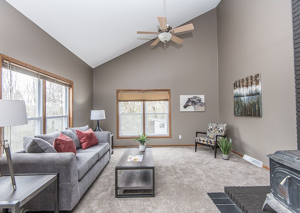 A slight bend ushers you through the tree-lined drive as you are greeted by ever changing blossoming woods. Once inside, you'll be delighted with soaring ceilings as you relax in your living room with a backdrop of mature trees. An open concept encourages family togetherness. Granite counters perch atop white cabinets with pull out shelves! New stainless steel appliances will bring out your inner Rachel Ray! Master suite features double closets, double sinks and sitting room. Vanity is separate from toilet/shower area. New deck provides additional entertaining space! Exposed walkout lower with 3 lite patio door and full size windows floods the space with natural light! Private entrance could lend to a potential in-law suite. Easy commute to I94.