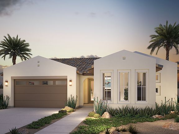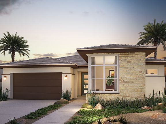 Residence 1 can be found at Esprit, a new home neighborhood in the community of University Park in Palm Desert. The single-story home includes an open-concept great room, complete with kitchen island and Samsung appliances, that connects with the outdoors via a 167 square foot covered outdoor living space.
