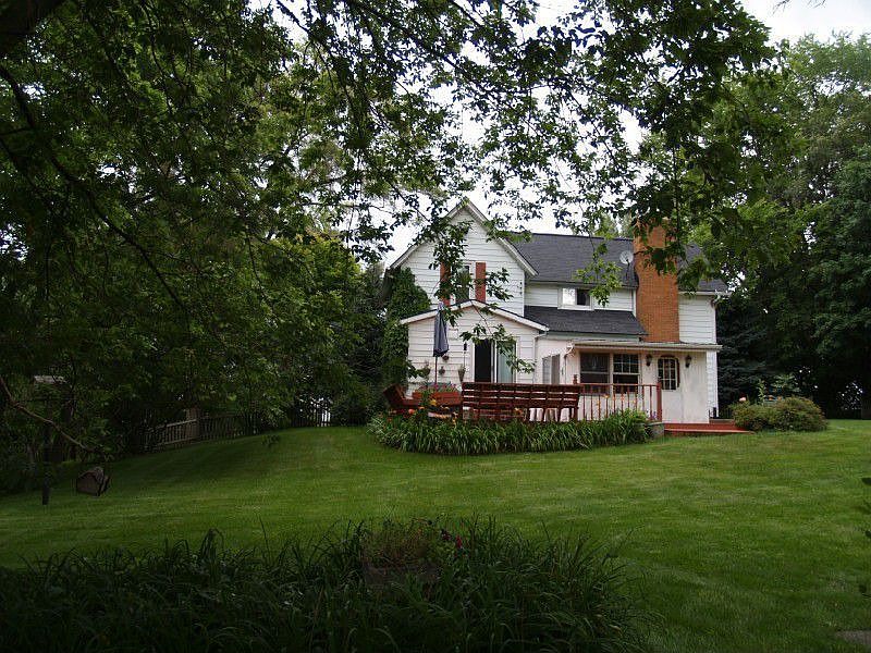 Great old farmhouse. Wood burning fireplace in living room for cold winter nights. Totally updated with newer windows,roof,furnace and hot water tank. Fantastic private setting with 1.86 acres of fruit trees,shade trees and lots of flower gardens. Fenced back yard.Has well for watering with a faucet in the kitchen for well water. Large den 10x12 on second floor off master bedroom. Close to everything. Large barn in need of repair.