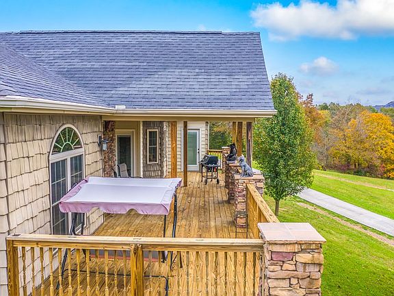 This home is perfect for those who want to live in a peaceful setting, but enjoy easy access to town and I-40, as well as the Great Smoky Mountains. It has 5 acres of land that offer peace and privacy, as well as Smoky Mountain views from inside or outside. Great open floor with over 2300 sq ft of main level living, a 612 sq ft attached garage and a 960 sq ft detached garage give you plenty of room for cars, 4 wheelers, and ATVs. Enjoy watching sunsets while relaxing on your deck. And the unfinished basement makes the perfect workshop or use for overflow storage. Call today for your appointment.