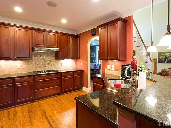 Captivating custom built 3BR/2.5BA home on quiet spacious wooded lot. Gourmet kitchen with granite, custom cabinets, butler's pntry, & incl ss appl: dbl oven, fridge, and freezer. 1st Fl mstr bdrm w WI clst, dbl shower, and jet tub. Outdr living on deck & screened porch. Home incl all the extras: high end finishes, vast closets, home generator, central vac, and home sound system. Neighborhood has comm cntr, pool, & playground. Near Outdoor Recreation w/ easy commute to WF, RTP, Ral.