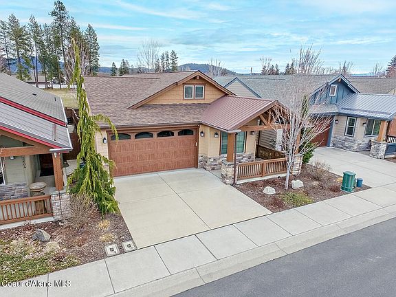 Coeur d'Alene Premier 55+ Green Home Community. Home features; 3 beds/ 2 full baths, spacious kitchen w/quartz counters, island, pantry, laminate wood floors, lg master w/bath, walk in closet, dbl vanity, step in shower, Mini Split A/C, radiant floor heating, utility sink, oversized finished 2 car garage w/storage utility room. Community Center and Community Garden. Located near shopping, Kroc Ctr and health corridor.