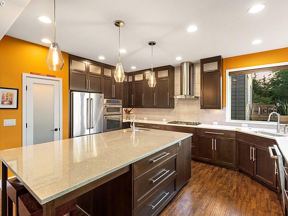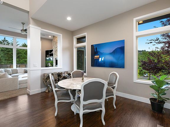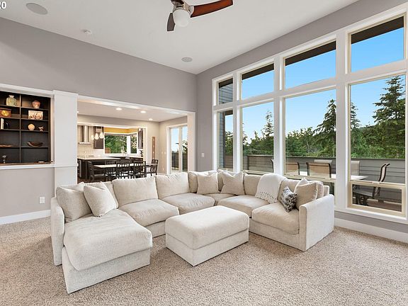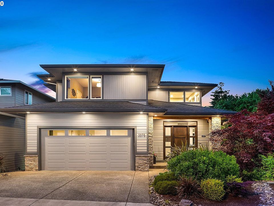TUESDAY OPEN 6/9 11-1.Stunning custom home, w/ huge sunset views, near Bonny Slope Park! High-end appointments include; HW floors, oversized quartz island w/ 2nd sink, full-height kit cabinets, floor to ceiling stone FP, x-tra tall ceilings & huge windows. Rec room w/ sink, fridge & ice maker. Great for workouts, games or SEPARATE LIVING QUARTERS. multi-zoned HVAC, surround sound, Tesla charger, massive storage & fabulous at homelearning space/home command center! Oversized garage w/ built-ins