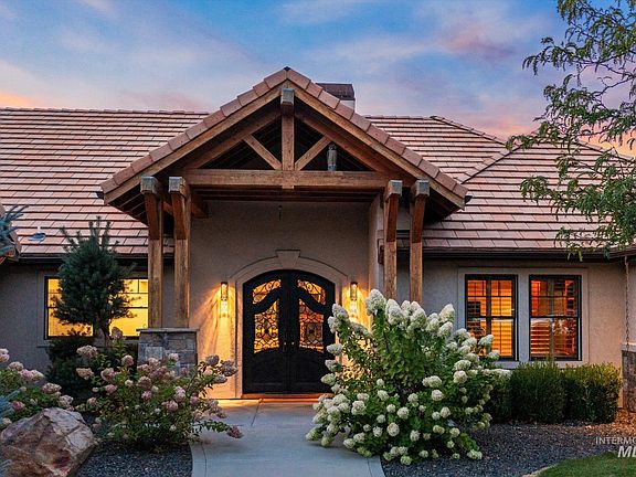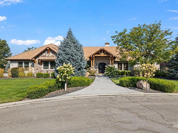 One of the most coveted homesites in the prestigious SpurWing Greens Estates is available! Spanning .61 acres and nestled along the expansive common area with scenic trails and breathtaking mountain views, a large pond to the side, no side or back neighbor, this single-level custom home boasts exquisite millwork, a climate-controlled, locked wine cellar, and a thoughtfully designed open floor plan with split bedrooms and an outdoor patio ideal for entertaining. The temperature-controlled garage is perfect for hobbyists or those needing a workshop space. Included is a lifestyle membership to the SpurWing Club, granting access to top-tier amenities such as tennis and pickleball courts, pools, a fitness center, and exclusive dining options. Perched above the Boise River and Greenbelt, SpurWing offers prime access to Eagle, Downtown Boise, and all the shopping, dining, and services in Meridian.