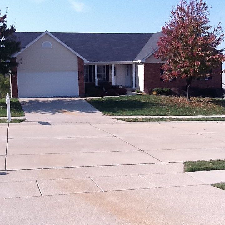 Single Family Home for sale by owner in Belleville, IL 62221. This property lays in a huge valley with a far reaching view of residental and farmland. The main entrance level has a large open floor plan with vaulted ceilings and covered deck off the kitchen.The garage has a metal work bench w drawers and work area plus 2 car parking.The walkout lower level has a large bedroom , large bathroom, 2 closets, 2 shelved storage areas,bar w wine storage space,open dining-family-play area. Outside concrete patio and covered deck.Fully landscaped,8- 35foot tall trees and irrigation system.Windows are andersen tilt-in. Multiple shopping areas, and Interstate 64 within a one mile radius. Also has a Home Ownders Association swimming pool.