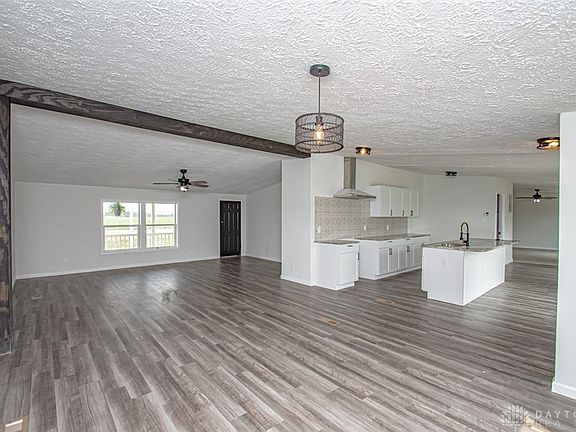Rare 4 bedroom 3 bath ranch on over a half acre acre in Eaton schools! Great open floor plan with vaulted ceilings and beams throughout. All new flooring & paint. Brand new kitchen with spacious island, granite counters, a large pantry and a lovely tile backsplash. All three bathrooms have been renovated and feature custom tile surrounds. Two bedrooms share a Jack and Jill bathroom. Large split floor plan with both a living room and family room. The generous master bedroom features a vaulted ceiling with 2 walk in closets and attached bath. You can enjoy the beautiful county views on the back deck or from the front porch. Nice big lot with room for outbuilding or garage.