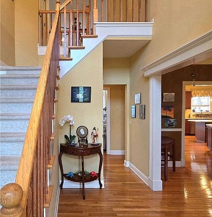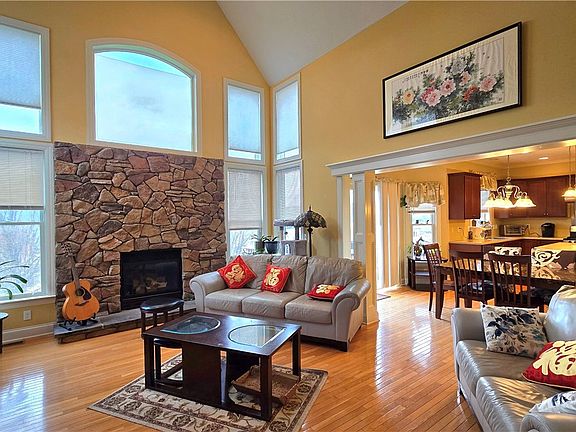 Located in the desirable area of Aurene in Painted Post, this stunning Colonial home seamlessly combines elegance and practicality. With 6 spacious bedrooms and 3.5 baths, it offers ample room for family and guests. At the heart of the home is a magnificent Great Room, featuring a soaring cathedral ceiling and a captivating stone wall fireplace, perfect for creating a warm and inviting atmosphere.