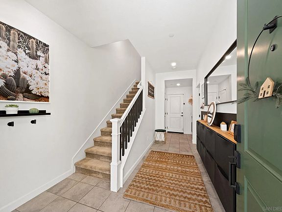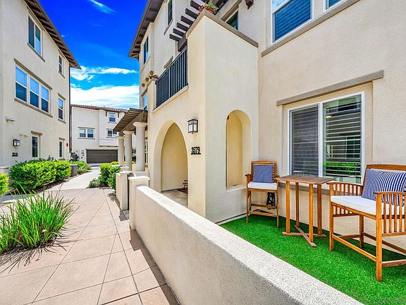 Accepting Backups! Popular Ventana community! Opportunity to possibly assume existing 3.07% VA loan! Stunning, newer built Smart Home with wired Ruckus, dual zoned climate, myQ, and a smart floor plan with a bedroom and ensuite bathroom on the first floor, ideal for in laws and guests. Enjoy a spacious garage with overhead storage, tankless hot water heater, whole home water softener and EV vehicle charger already installed to run with the homes solar. Main living area hosts the heart of the house with an expansive open concept kitchen/dining/living areas, a chef's kitchen w/large island, upgraded appliances, half bath and laundry room. On the top floor is a tastefully appointed primary bedroom, large walk-in closet, dual primary bath sinks, two secondary bedrooms and a dual sink hall bathroom. Sellers have further upgraded and maintained the home to continue an ideal standard of quality, convenience and aesthetic appeal. Featuring upgraded, high end laminate flooring, carpet, recessed lighting, ceiling fans, built-ins, gorgeous quartz counters, tons of cabinet storage, new sink fixtures, front gated patio with artificial grass area, balcony off the living room, plantation shutters, designer paint colors and home designs that just make sense. Ideal location adjacent to the El Corazon planned community park with the SoCal Sports Complex, sparkling pools at the William Wagner Aquatic Center open to the public, Senior Center and The Frontwave Arena with all of their coveted events. Excellent location very close to beaches, shopping, restaurants, military base and more!