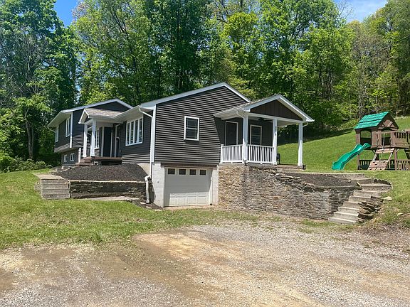Amazing hill-top setting surrounded by mature trees and beautiful views! 3 bedroom 1 updated, double sink bath, updated kitchen, hardwood floors, large deck and storage shed out back, deer and turkey right out your back door, bordered by two parcels totaling 1000 acres! Views across the road from the front porch are amazing!!