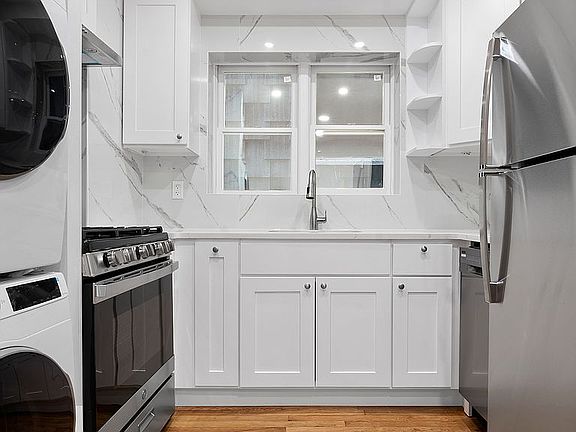 This gorgeous first floor apartment features three bedrooms, renovated kitchen and bath, an expansive living room plus amazing entertaining and outdoor space. In addition to the new kitchen appliances, there is a stackable washer and dryer in-unit for your convenience. Pristine hardwood floors and ample storage can be found throughout.