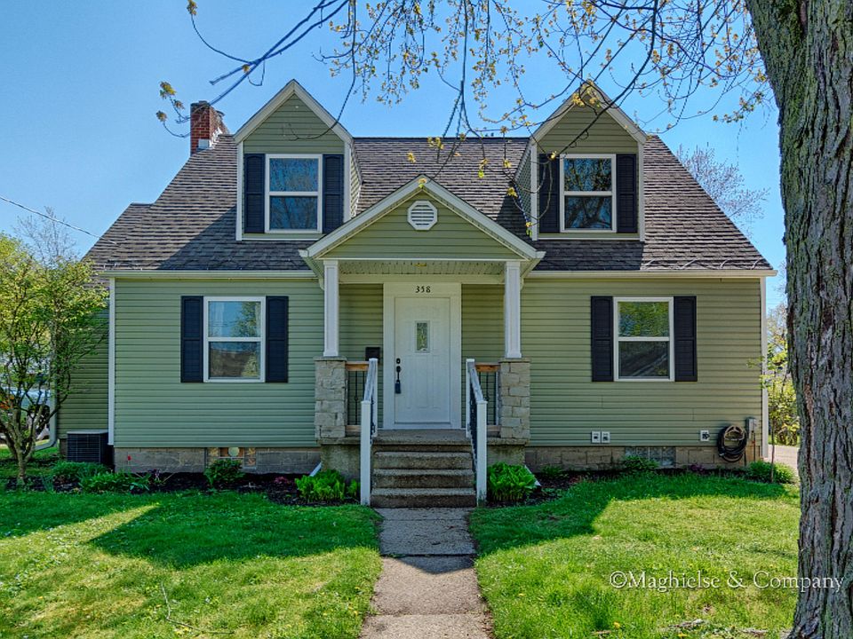 Nearly 1,900 sq ft finished in this updated Cape Cod in downtown Rockford. Features include 3 bedrooms, 2.5 baths, and beautiful updated kitchen with solid surface counter tops, built-in cooktop & built-in oven. You’ll also enjoy the convenient snack bar, great for overseeing homework or conversing with guests when preparing dinner. From the kitchen you can access the new covered deck on the back of the home with steps to the fenced backyard. Great for entertaining, relaxing, or grilling your favorite steak! The living room offers beautiful hardwood floors, and a lovely fireplace flanked by built-ins to display your collectibles. Also open to the dining area, which makes this great space for entertaining! The master suite is on the main floor and features a private half bath, and large walk-in closet. Another full bathroom and large laundry complete the main level. Up you'll find 2 more large bedrooms, perfect for any age occupant. A linen closet and 2nd full bath completes this level. The unfinished lower level has 8-foot ceilings and offers potential for more finished living area! You'll love living in downtown Rockford. Just a short walk to everything, and Rockford has so much to offer! Shopping, dining, The White Pine trail for bike rides and walks, the Rogue River for fishing and kayaking, specialty shops, and ice cream shops for cool summer treats! Call today for a private tour!