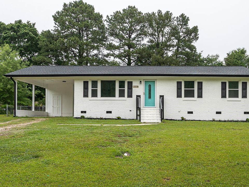 Beautifully renovated one-story home featuring luxury vinyl plank flooring throughout, freshly painted, new lighting, new appliances and renovated kitchen and baths. Spacious living areas with nice connectivity and openness in the main spaces. Owners' suite has full bath with lovely niche that could be converted to a closet or open shelving. Yard is private and has a separate building with permanent stairs to 2nd level -great space for storage, workshop or other hobbies. Carport adds to the convenience and comfort of your coming and going with easy access into your beautiful kitchen. And you'll find a large storage closet under cover of the carport as well. Come enjoy this lovely country setting not far from downtown Angier.