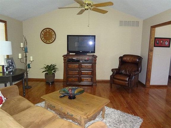 Beautiful Newer hardwood floors highlight this updated Ranch. Newer carpet, interior paint, light fixtures and faucets. Spacious Kitchen with nice size dining area with bay window, center island with cooktop stove, built-in microwave, oven and deck. Main level Laundry Room with tile flooring. Vaulted Living Room with patio doors to main level patio. Master Bedroom has walk-in closet and private bath. 2nd and 3rd Bedroom have shared vanity. Huge Family Room down. Storage Room 14 x 22. 3rd Garage down is 21 x 21.10 with full concrete drive. 22.8 x 21.10 attached garage. Quality construction. Six Panel Doors. Andersen Windows. Attic Fan. Sprinkler System. Central Vac. Lennox Furnace.