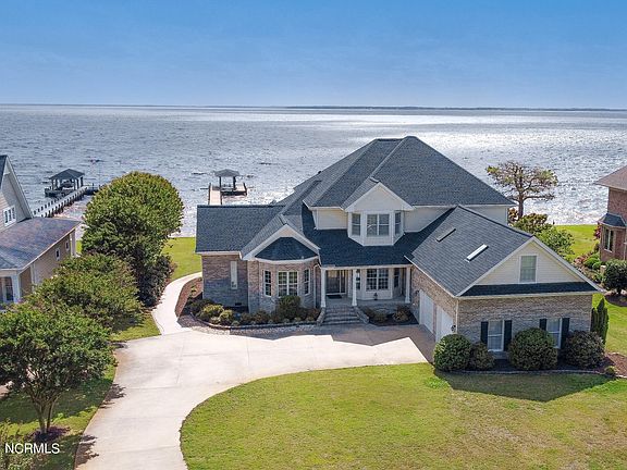 Enjoy stunning sunsets over Edenton Bay from this pristine property in the private gated community of Edenton Bay Plantation, a part of Historic Hayes Plantation. Hayes was the home of Samuel Johnston, one of colonial North Carolina's first Governors. A spectacular great room is the highlight of this airy, open floor plan, boasting an abundance of windows that frame the Albemarle Sound. A library and formal dining areas are open to the great room, and the spacious kitchen offers a large center island, incredible walk-in pantry, and tons of storage space. The first-floor waterfront master bedroom and bath have exceptional views. A loft landing area is the perfect spot for the pool table that conveys! Two guest bedrooms and a home theatre (or fourth bedroom) are upstairs. An oversized double attached garage is attached. Hop on the boat and be underway in moments from covered boat lift right out your back door. Come home to enjoy dinner and the sunset on your waterfront patio! This attractive, low maintenance brick home offers the best of life on the waterfront living with proximity to both shops and restaurants in downtown Edenton and the Links at Mulberry Hill's golf course. This impeccably maintained home is well worth a look!