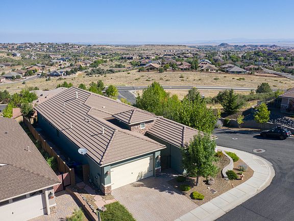 Amazing views await you on this stunning corner lot with views of Thumb Butte, Granite Mountain, San Francisco Peaks and Mingus Mountains. This property has granite countertops, 2 bedrooms and an office. The great room features lots of windows and a gas fireplace. There is a wonderful separate detached casita which would be ideal for an in-law suite or home office. The garage is a little deeper than normal. Beautifully maintained home.